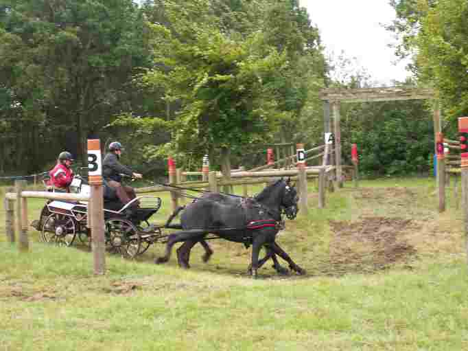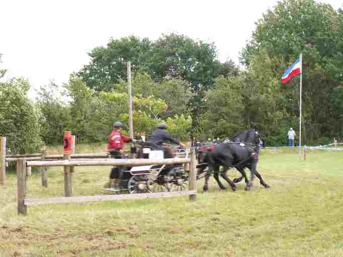 Im Marathon wurden die Pferde Yk Dark President (rechts) sowie Dark Zolleke (links) eingesetzt. Im ersten Hindernis wurde Bestzeit und in den weiteren Hindernissen Zeiten, die jeweils unter die Top 5 zählten, gefahren. Lediglich ein Hänger in Hindernis 5 brachte uns einen Gesamtrang im Marathon von Platz 10.