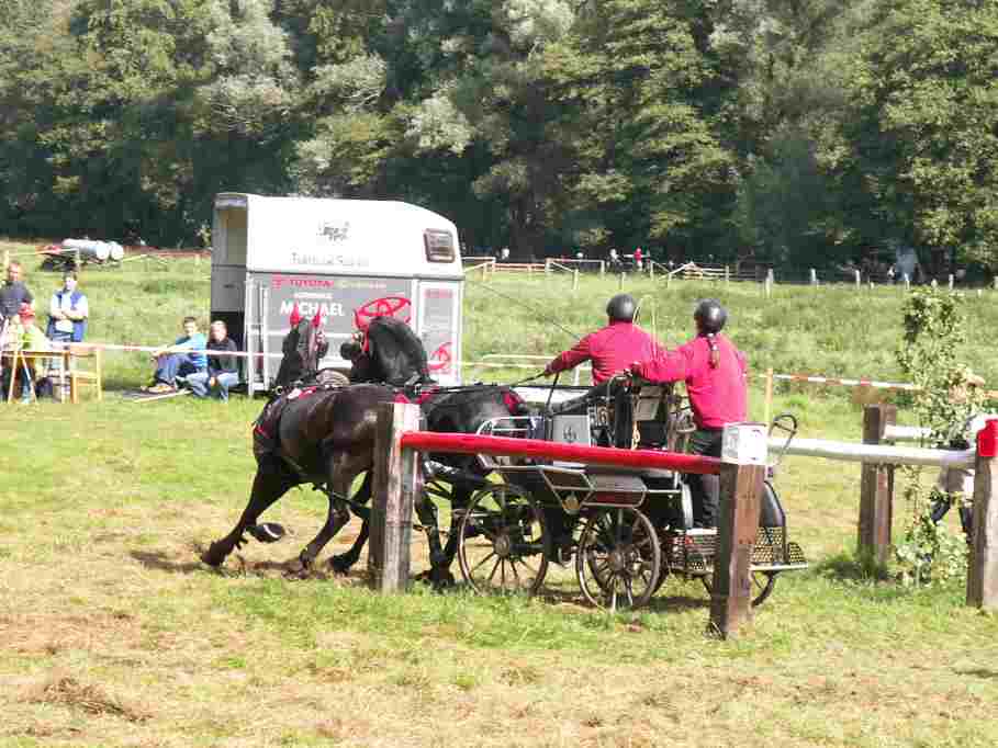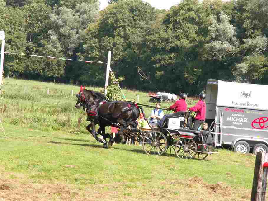 Auf den Bildern sind folgende Pferde zu sehen : Deckhengst Yk Dark President (rechts), Dark Zolleke (links), in der Dressur Yk D.D. First. Zum ersten Mal hat Katharina Wicht als Beifahrerin an allen Prüfungen teilgenommen